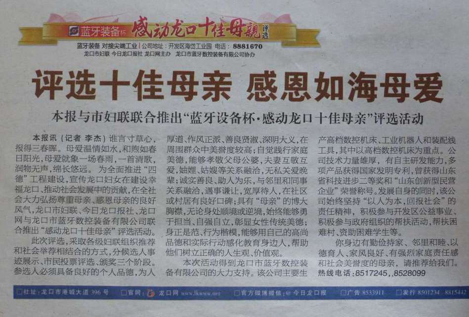 - 上一篇:亨嘉裝備杯·感動龍口十佳母親候選人之一---姜福云 2014/5/6