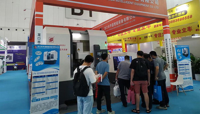 本次展會期間,公司參展的制動盤立車(制動盤粗精一體加工機床),雙主軸車銑一體機等多種機型,在此次展會中受到了廣泛的關注,現場中外優秀參展商、產品采購商紛紛駐足觀看數控機床的現場加工過程,對參展機型表現濃厚的興趣,并一致給予好評。
